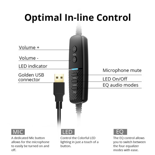 Tronsmart Glary Gaming Headset 7.1 Virtual Surround Sound Stereo Sound with Colorful LED Lighting USB Interface Mic for PC Laptop